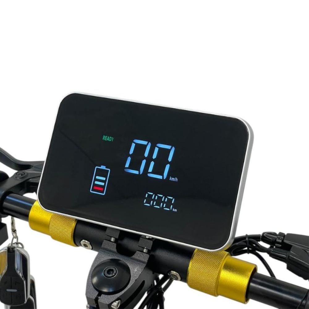 - شاشة عرض رقمية ذكية: التحكم صار أسهل! فيه شاشة رقمية واضحة تركب على المقود تعطيك كل المعلومات اللي تحتاجها: السرعة، ومستوى البطارية، والمسافة المقطوعة. قيادة ذكية وعصرية تلائم جيل اليوم. 📱