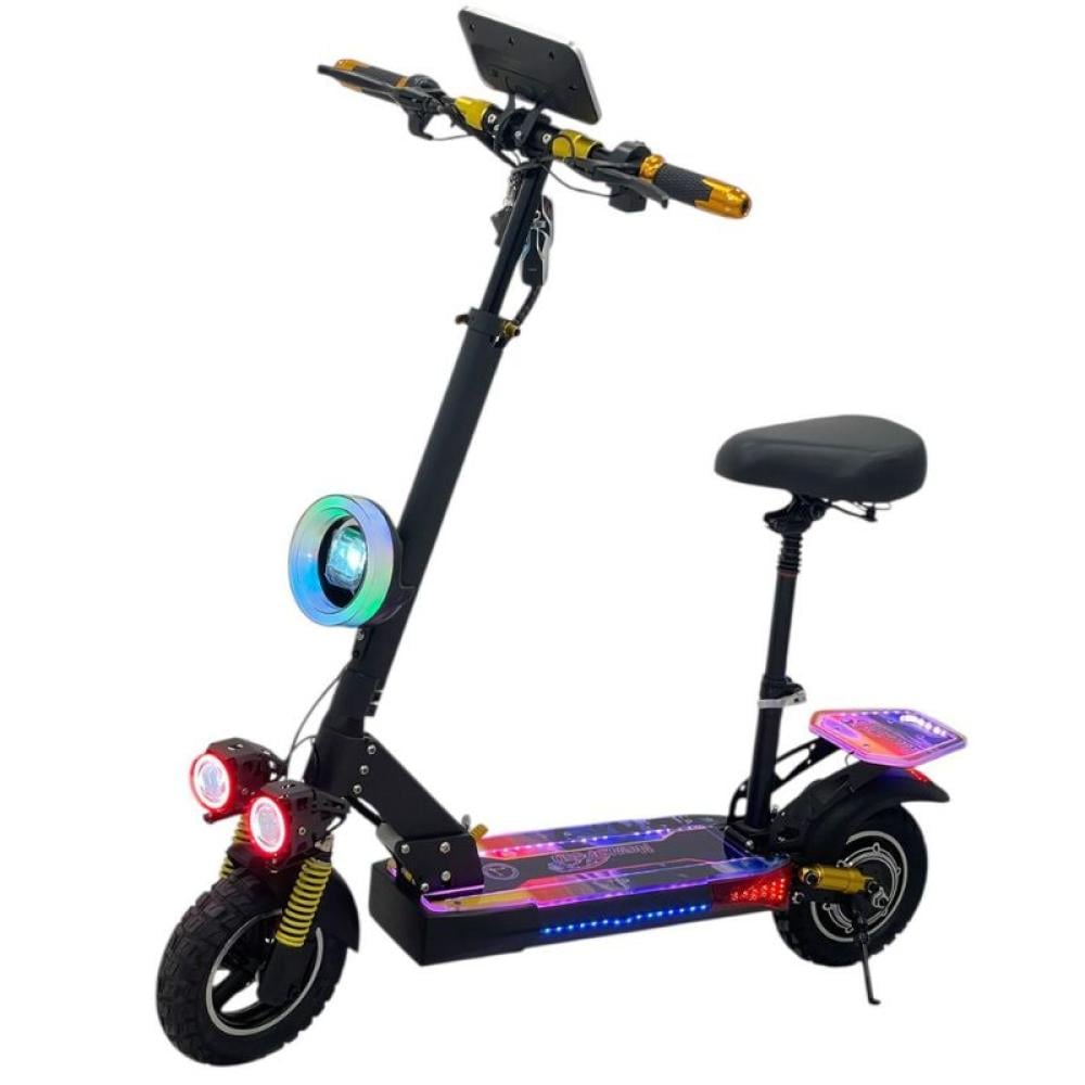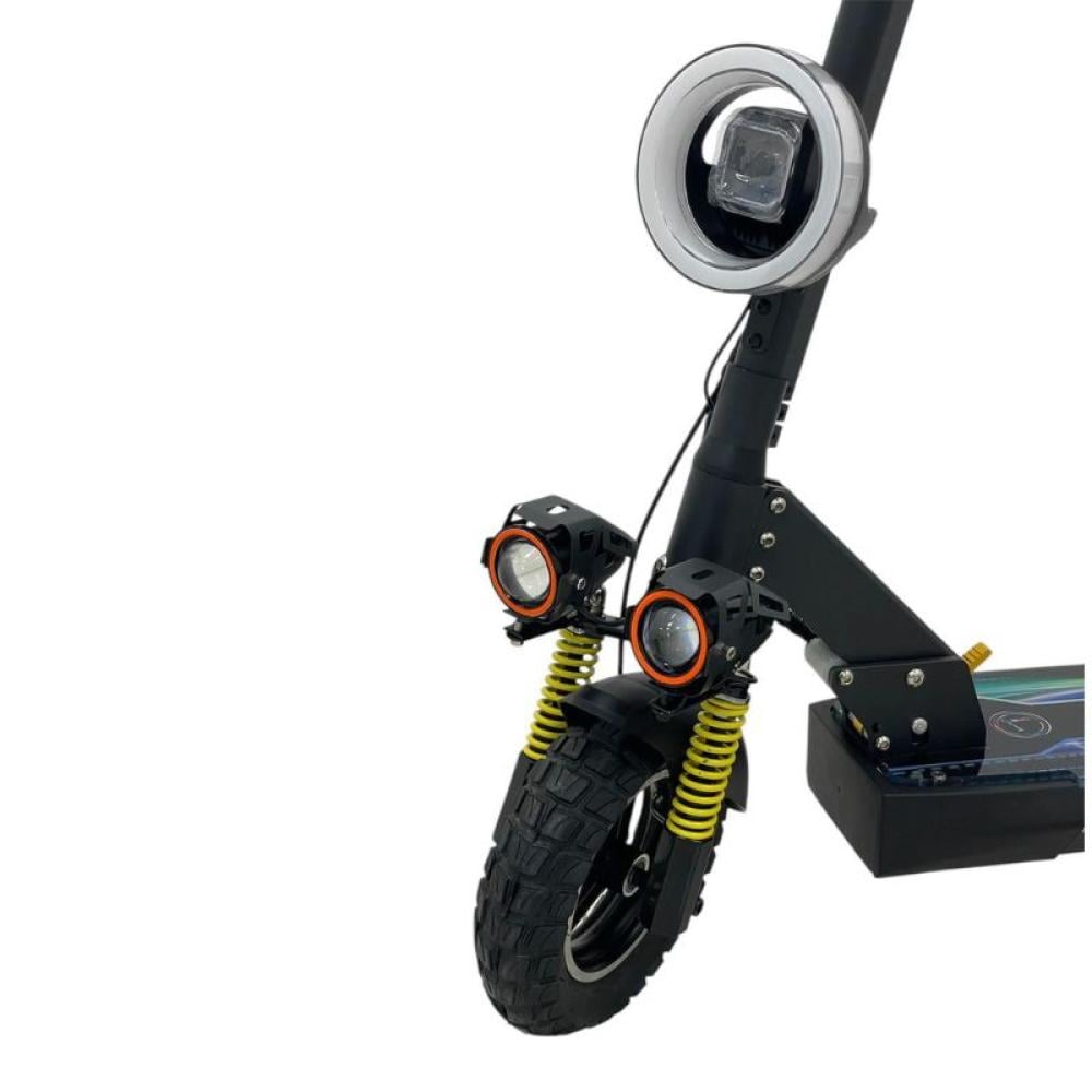 - إضاءة مبهرة وتقنيات عالية: تمتع بإضاءة LED ديناميكية وملونة أسفل الدِك، بالإضافة إلى كشاف دائري أمامي بألوان الطيف 🌈! مو بس عشان الزينة، هي كمان تزيد من أمانك وتخليك مرئي بوضوح من كل جهة، وهذي نقطة مهمة ما ننساها. غير الإضاءات الكبيرة الأمامية اللي تضيء لك الطريق بوضوح ما له مثيل. 💡