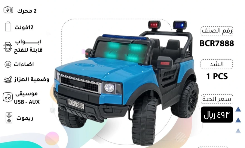 مميزات سيارة جيب أزرق كهربائية 12 فولت: