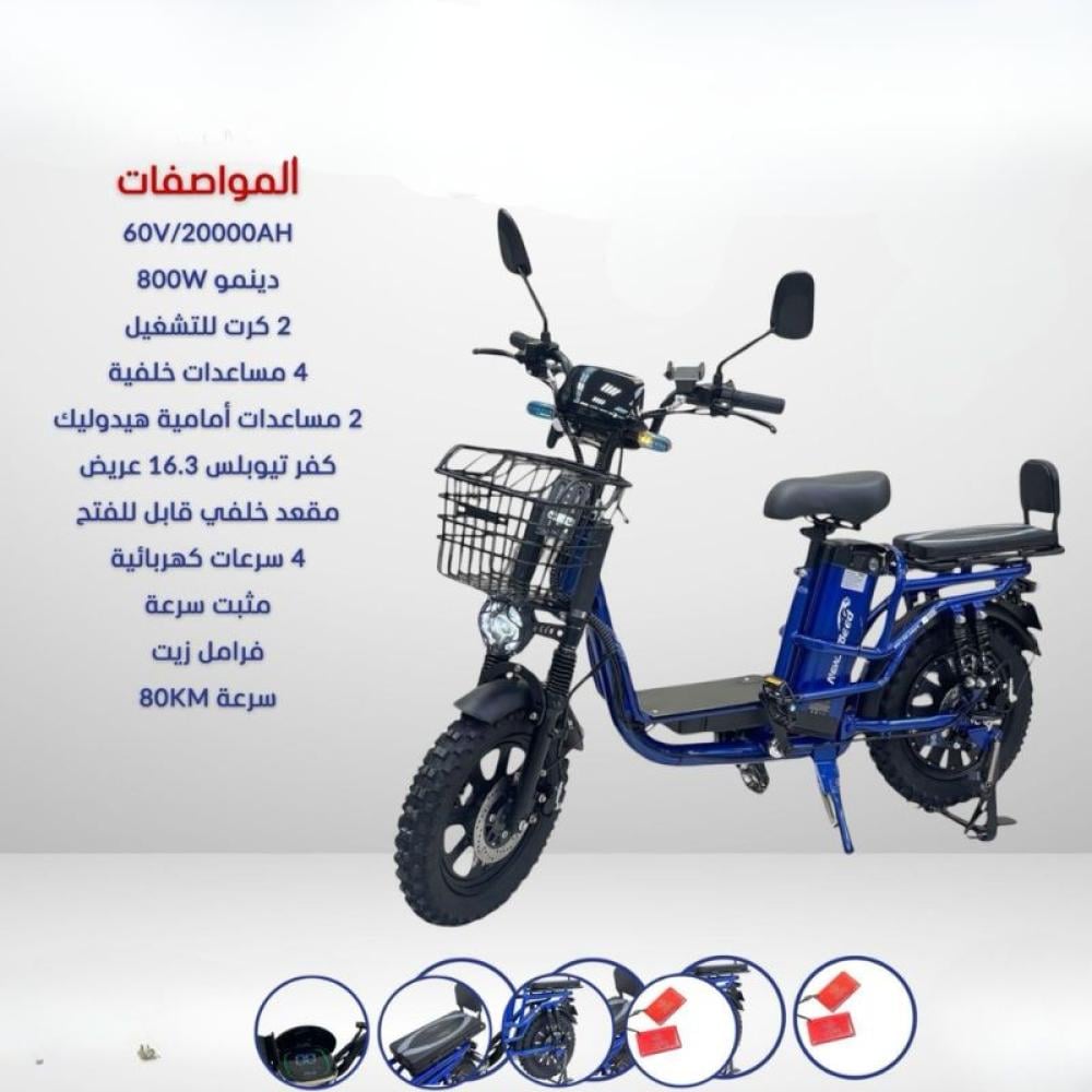 • بطارية 60V/20000AH تمنحك مسافة قيادة تصل إلى 80 كم، مما يسمح لك بالاستمتاع برحلات طويلة دون القلق بشأن الشحن 🔋.
