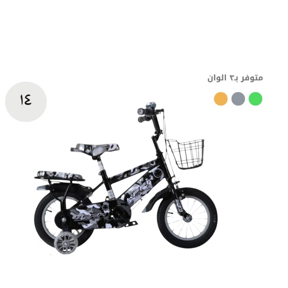خل طفلك يكتشف مغامرته الخاصة مع دراجة "كوماندو XFH" القوية 🎯! تصميم مموه باللون الرمادي يعطيها طابع عسكري أنيق، ومع العجلات الجانبية والسلة الأمامية، بيكون التنقل آمن وسهل ومليان حماس 💥🚴♂️.