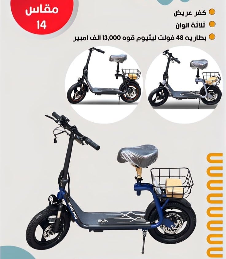 سكوتر 48 فولت بسلة خلفية بكفرات عريضة مقاس 14